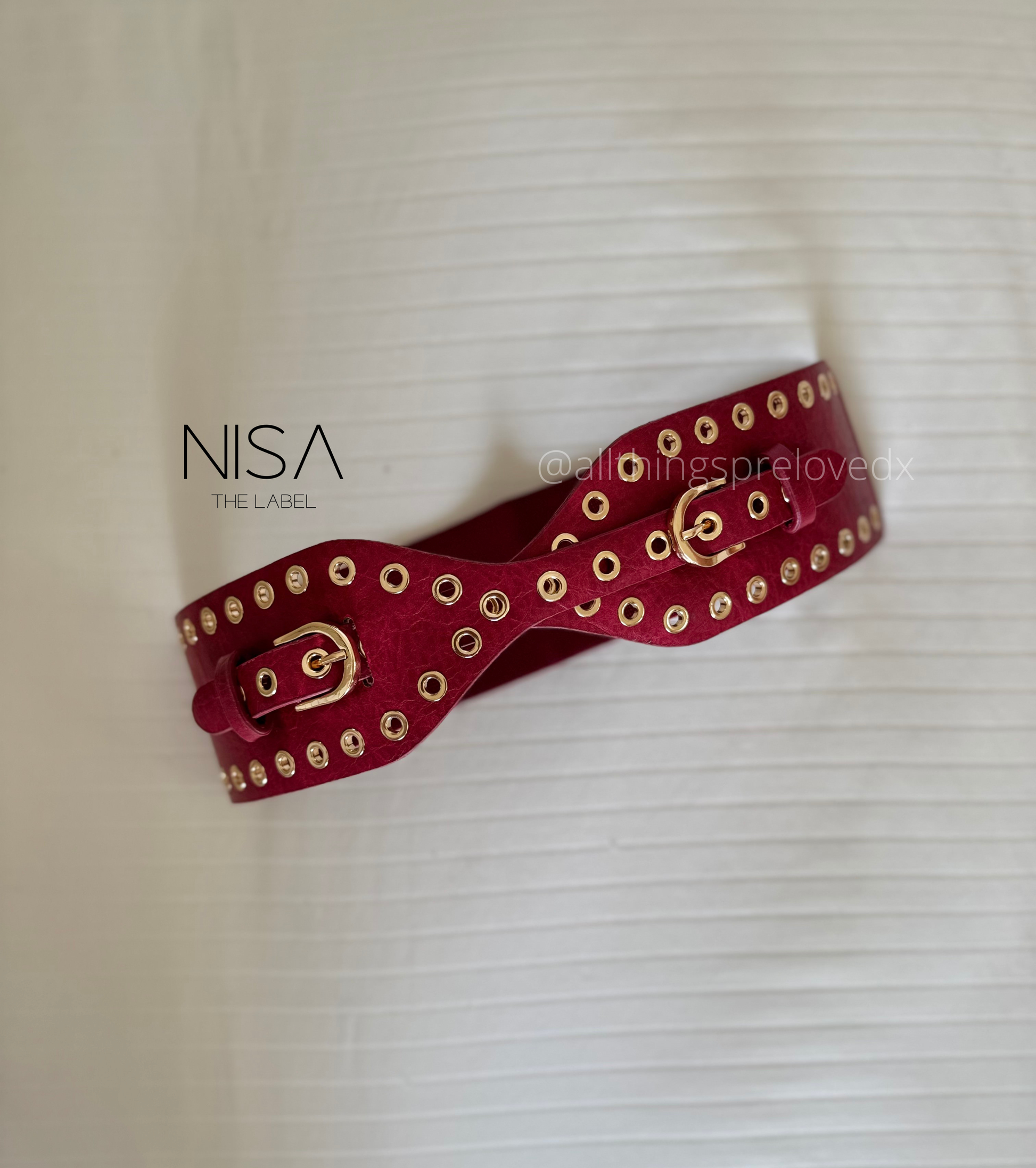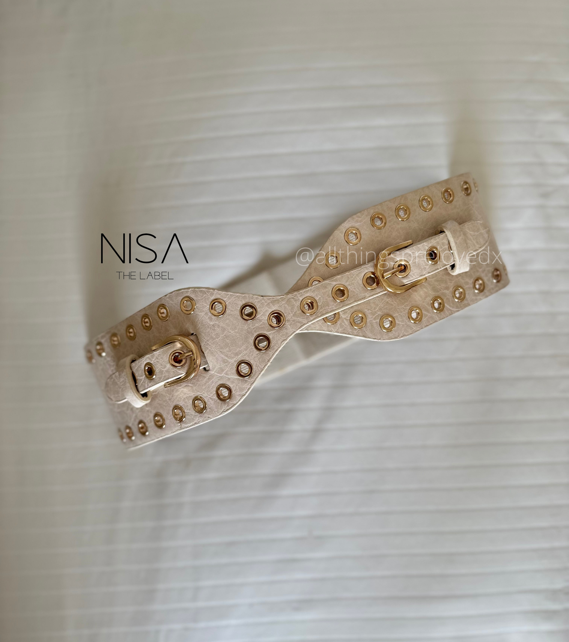 Elevate your silhouette with this rivet-lined double buckle waist cincher belt, designed to add structure and style to any outfit. Its sleek double buckle closure ensures a secure fit while the rivet detailing offers a bold, refined edge. Perfect for shaping your waist and enhancing your look with understated sophistication.
