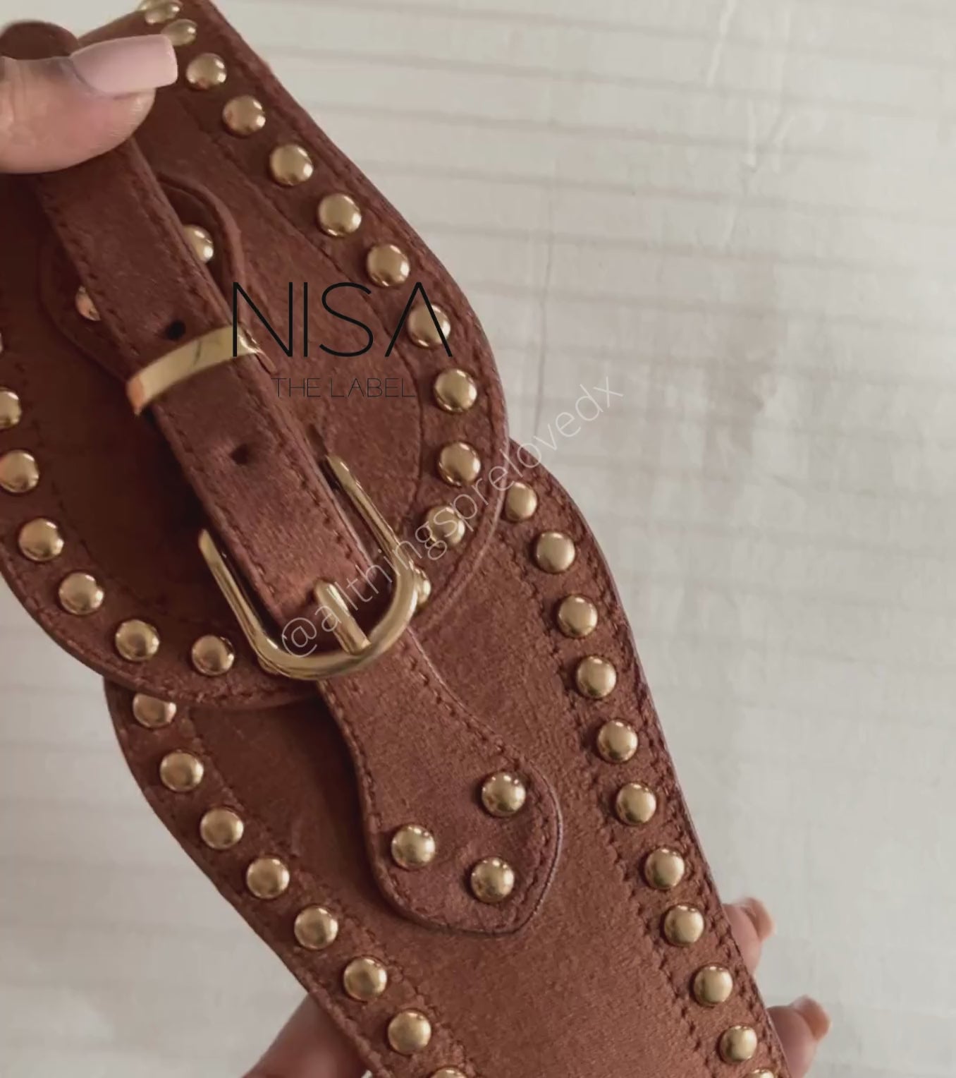 A suede material belt with studs details that is a waist cincher to give you the ultimate style quotient.